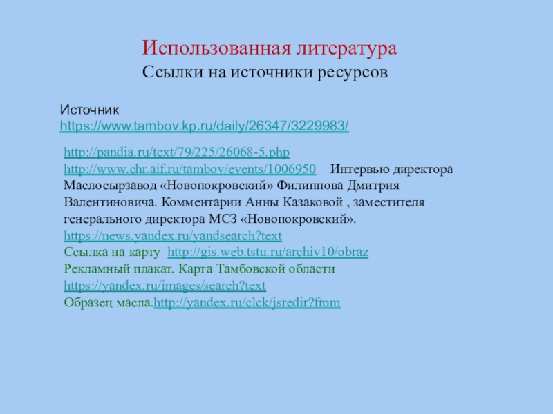 Поэтому необходимо сформировать представления обучающихся о различных источниках географической информации, которые помогут в освоение изучения краеведческого материала по теме: «Роль и место Новопокровского маслосырзавода в экономике Тамбовской области».