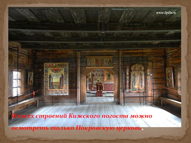 Слайд 11Из всех строений Кижского погоста можно осмотреть только Покровскую церковь.
