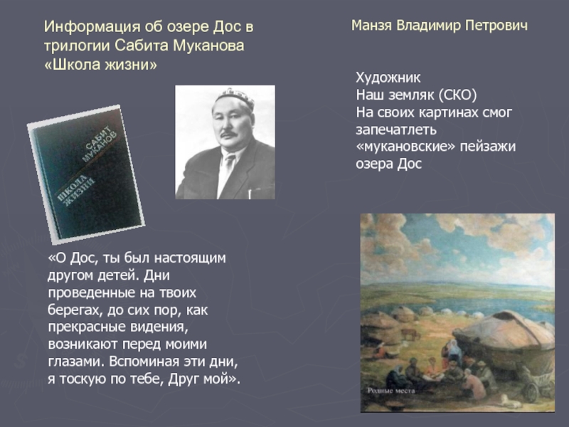 На своих картинах смог запечатлеть «мукановские» пейзажи озера Дос