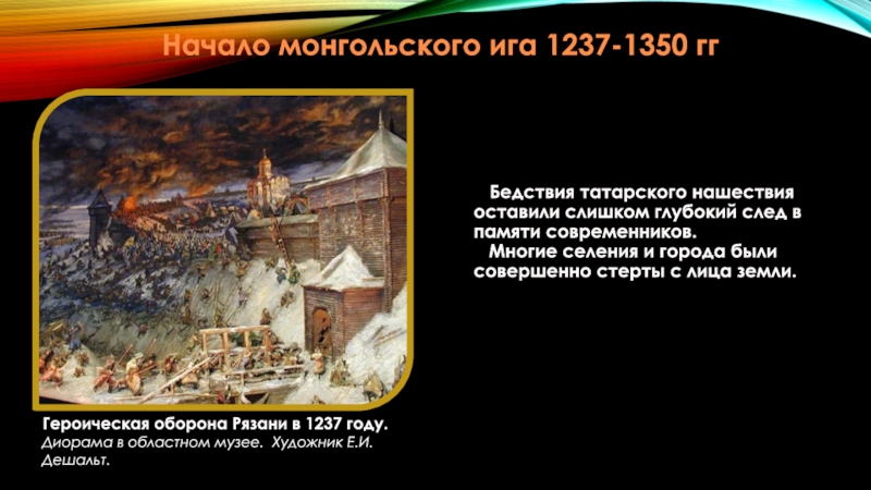 Героическая оборона Рязани в 1237 году. Диорама в областном музее. Художник Е.И. Дешальт.