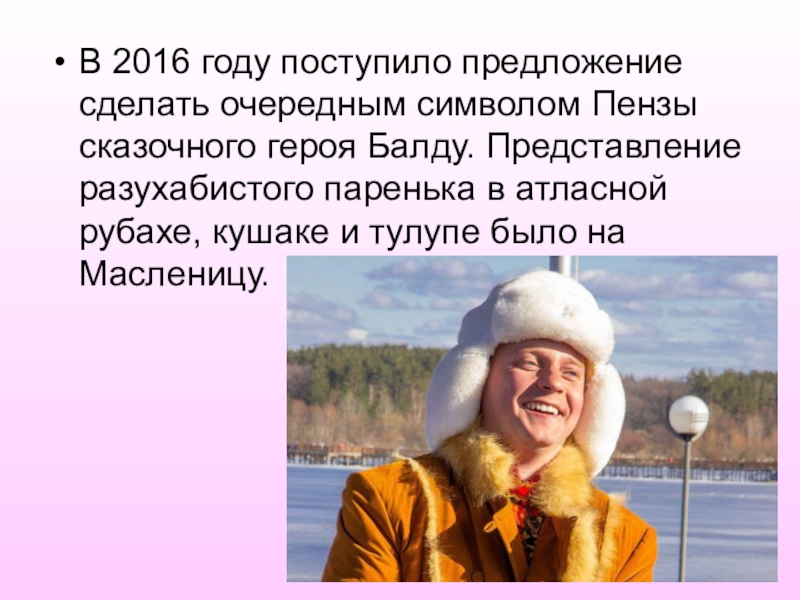 Слайд 13В 2016 году поступило предложение сделать очередным символом Пензы сказочного героя