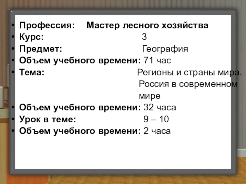 Профессия: Мастер лесного хозяйстваКурс: 3Предмет: