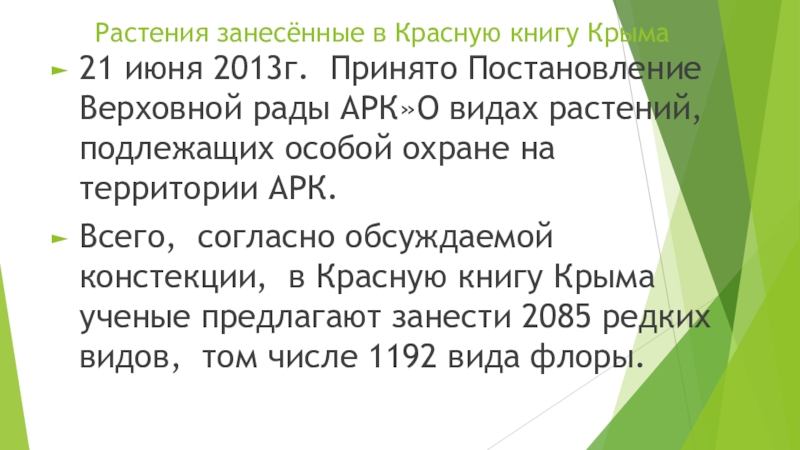 21 июня 2013г. Принято Постановление Верховной рады АРК»О видах растений, подлежащих особой охране на территории АРК.