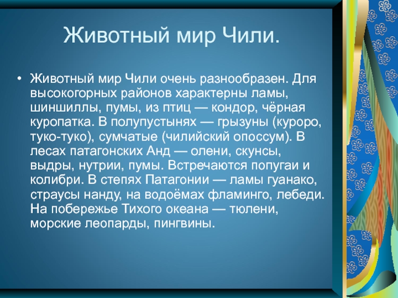Презентация, доклад на тему Прзентация по географии Чили 7 класс
