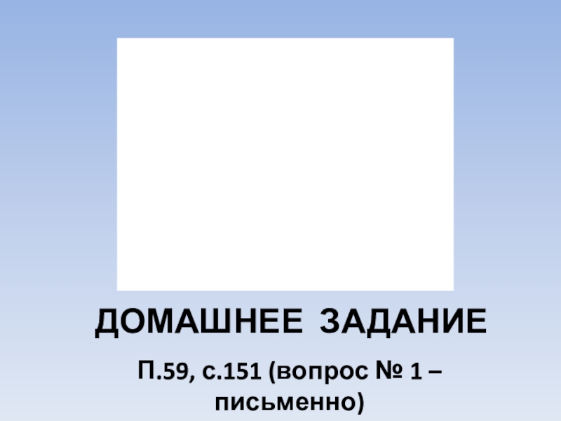ДОМАШНЕЕ ЗАДАНИЕП.59, с.151 (вопрос № 1 – письменно)