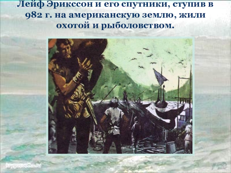 Слайд 15Лейф Эрикссон и его спутники, ступив в 982 г. на американскую