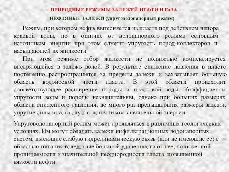 НЕФТЯНЫЕ ЗАЛЕЖИ (упруговодонапорный режим)
