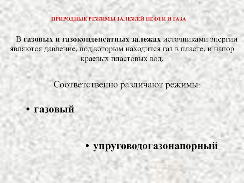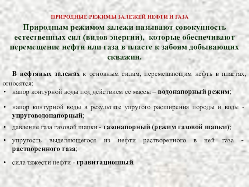 ПРИРОДНЫЕ РЕЖИМЫ ЗАЛЕЖЕЙ НЕФТИ И ГАЗА