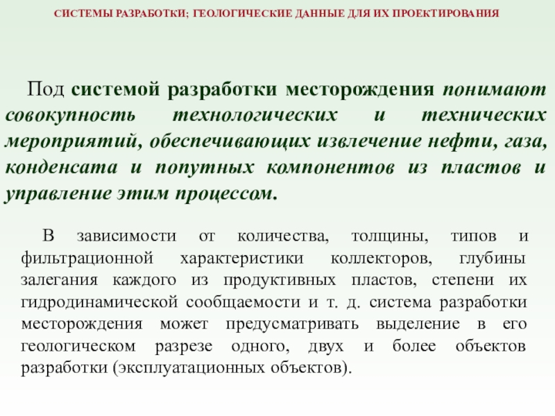 Под системой разработки месторождения понимают совокупность технологических и технических мероприятий, обеспечивающих извлечение нефти, газа, конденсата и попутных компонентов из пластов и управление этим процессом.