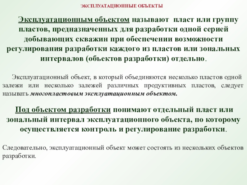 Под объектом разработки понимают отдельный пласт или зональный интервал эксплуатационного объекта, по которому осуществляется контроль и регулирование разработки.