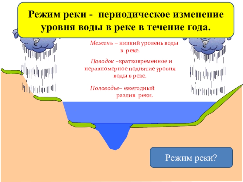 Режим реки - периодическое изменение уровня воды в реке в течение года.