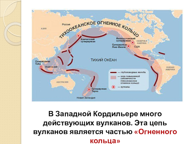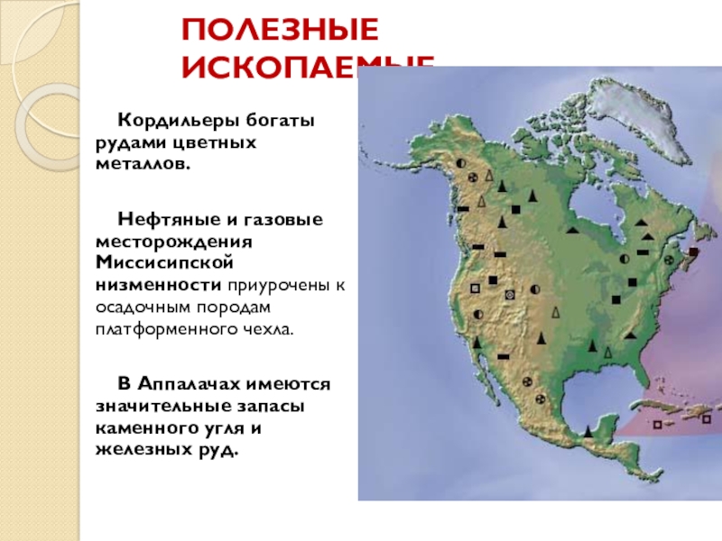 Кордильеры: Скалистые горы, Каскадные , Береговые хребты, Сьерра-Невада, Зап. И Вост. Сьерра-Мадре, Большой Бассейн, Аляскинский хребет