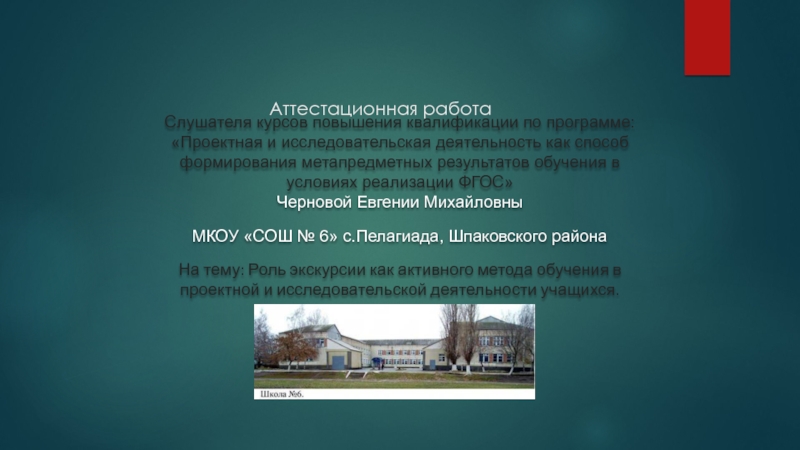 На тему: Роль экскурсии как активного метода обучения в проектной и исследовательской деятельности учащихся.