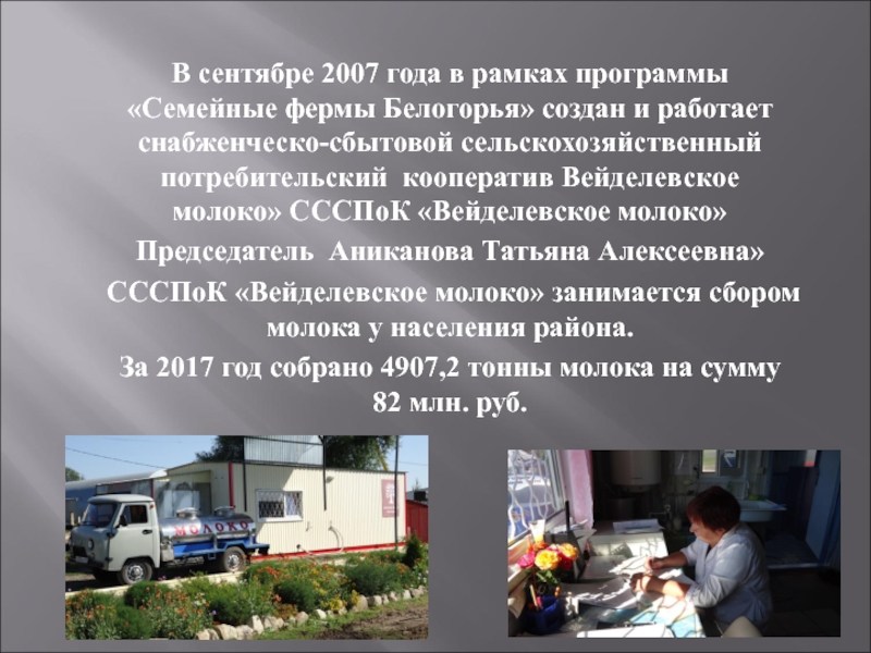 Слайд 18В сентябре 2007 года в рамках программы «Семейные фермы Белогорья» создан