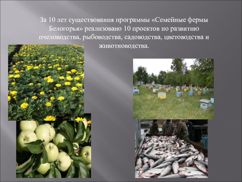 Слайд 13За 10 лет существования программы «Семейные фермы Белогорья» реализовано 10 проектов