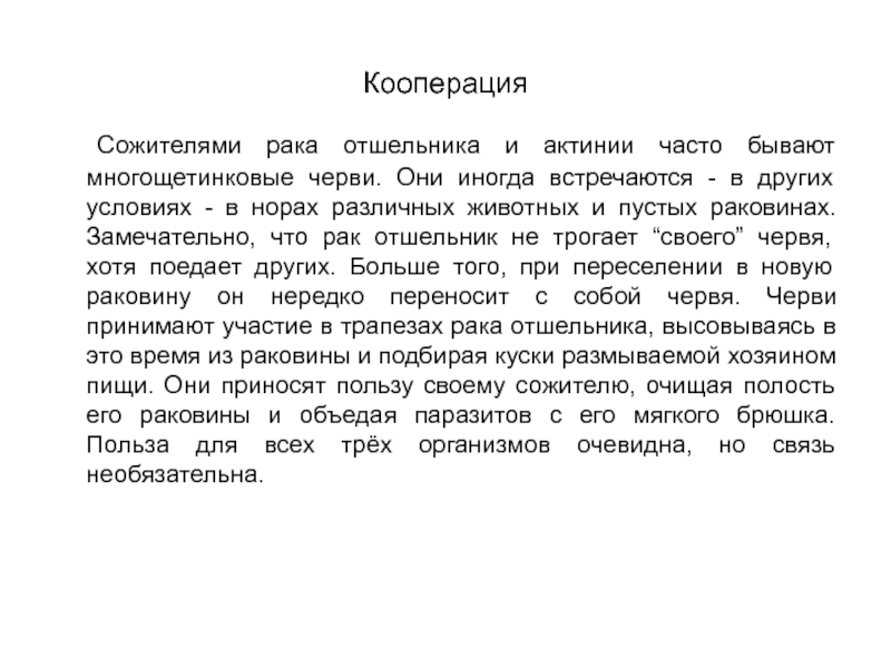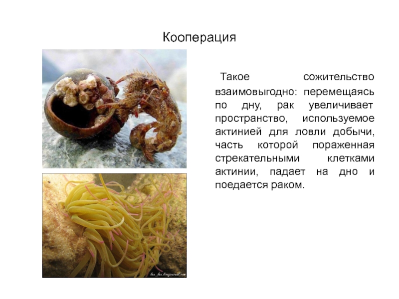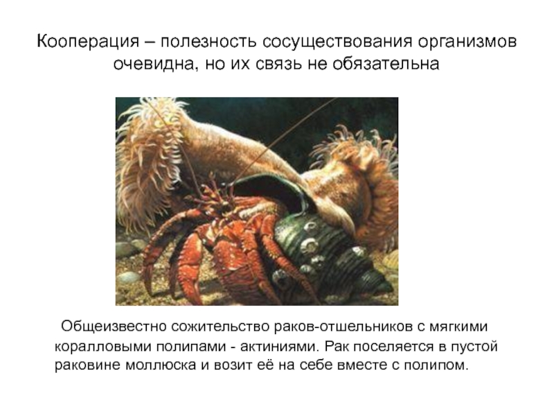 Слайд 3Кооперация – полезность сосуществования организмов очевидна, но их связь не обязательна