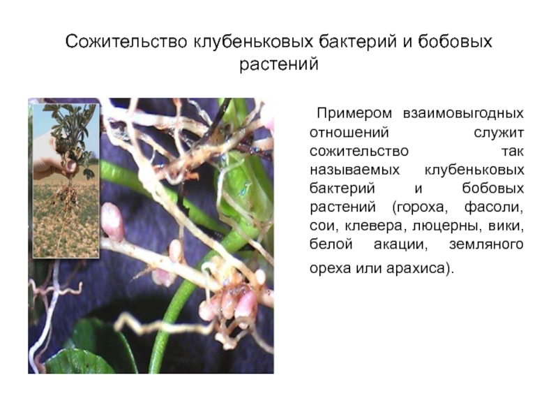 Слайд 13Сожительство клубеньковых бактерий и бобовых растений