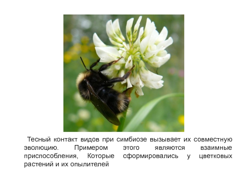 Слайд 28 Тесный контакт видов при симбиозе вызывает их совместную эволюцию. Примером этого