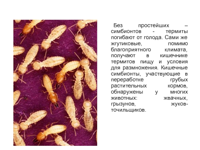 Слайд 12 Без простейших – симбионтов - термиты погибают от голода. Сами же