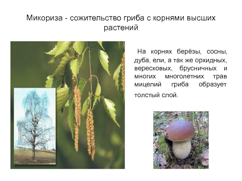 Слайд 16Микориза - сожительство гриба с корнями высших растений