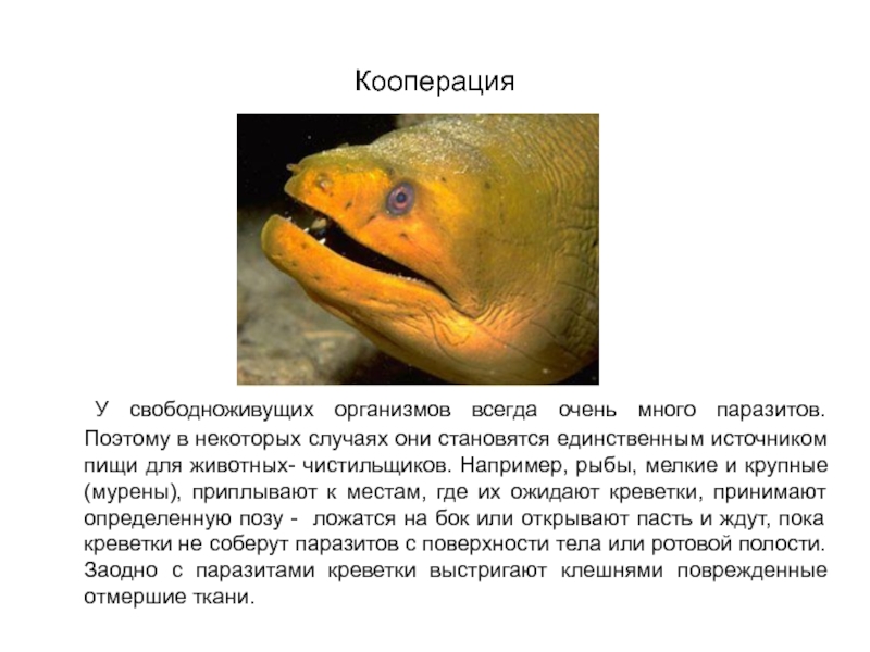 Слайд 7Мелкие рыбы семейства губановых очищают пасть и поверхность тела более крупных