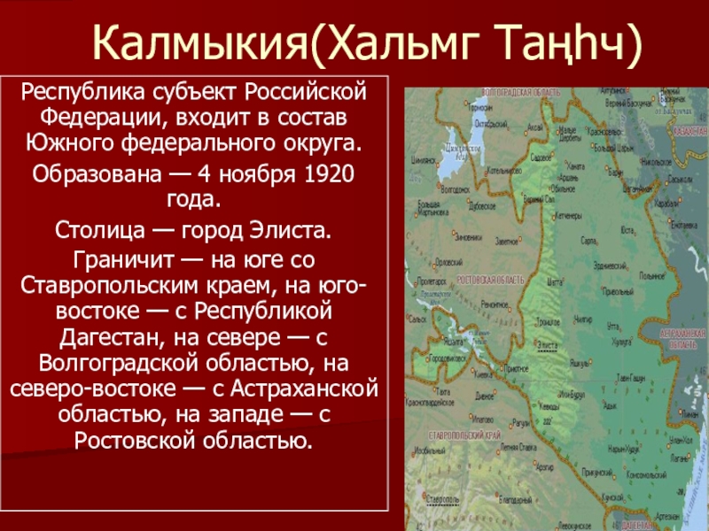Слайд 3Калмыкия(Хальмг Таңһч)