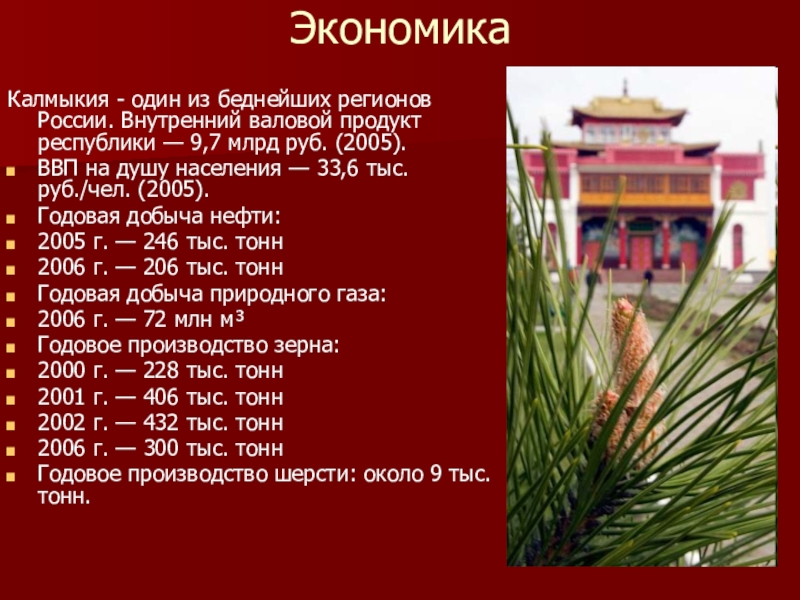 Калмыкия - один из беднейших регионов России. Внутренний валовой продукт республики