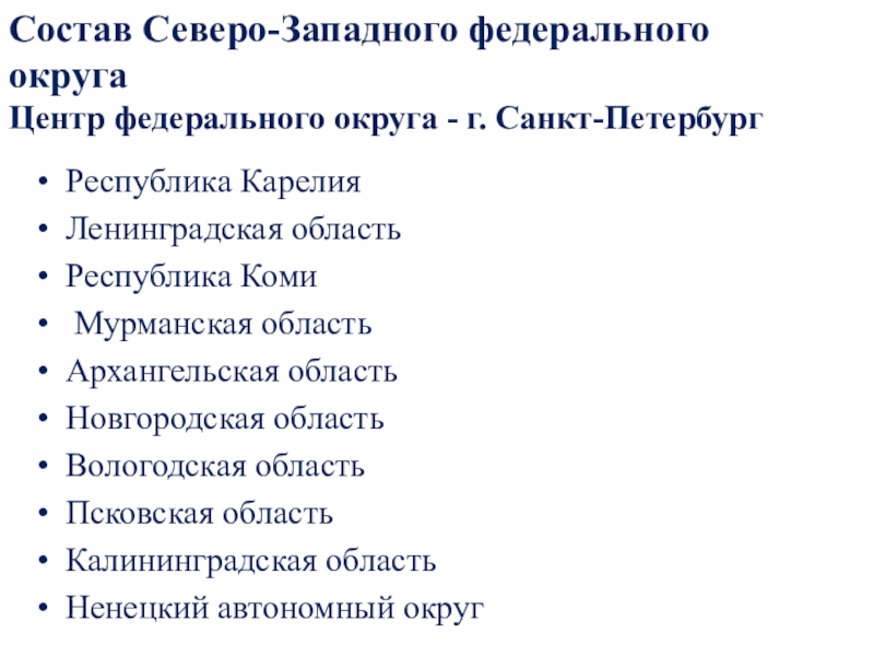 Состав Северо-Западного федерального округа