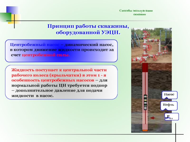 Насос откачивает пластовую жидкость из скважины и подает ее на поверхность по колонне насосно-компрессорных труб.