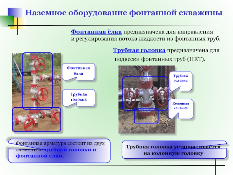 Фонтанная арматура состоит из двух элементов: трубной головки и фонтанной елки.