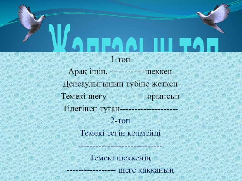 Арақ ішіп, темекі шеккен