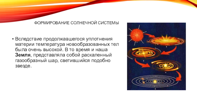 Формирование солнечной системыВследствие продолжавшегося уплотнения материи температура новообразованных тел была очень высокой. В то время и наша