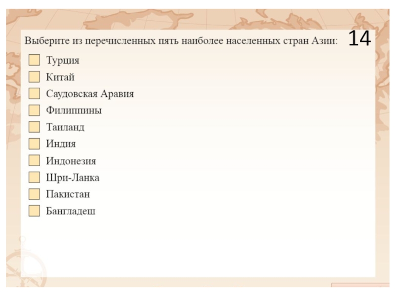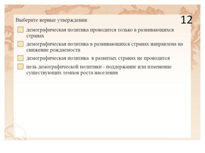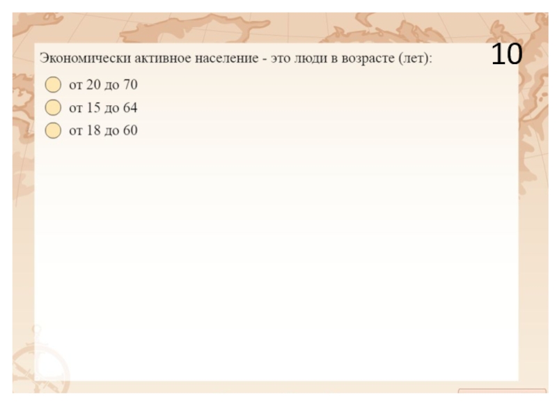 Презентация, доклад на тему Тест на тему Население 10 класс