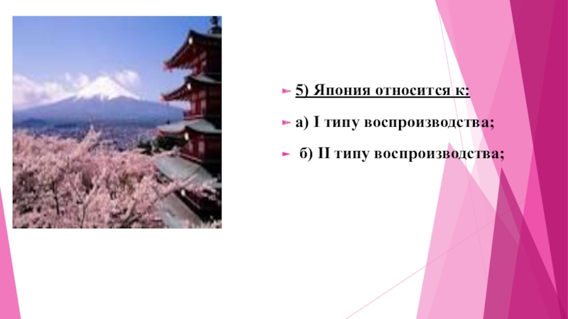 5) Япония относится к:а) I типу воспроизводства;  б) II типу воспроизводства;