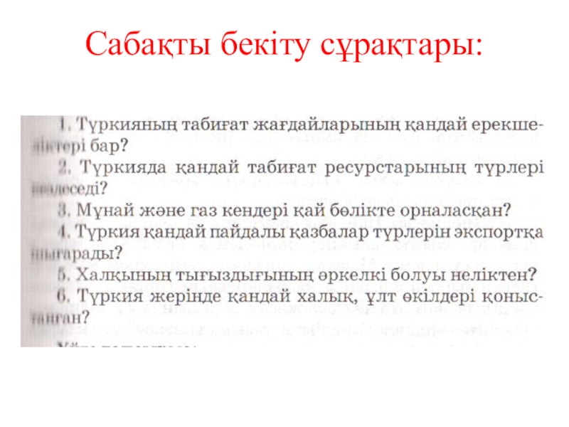 Презентация, доклад на тему Түркия. Мемлекеттің құрамы мен құрылымы. Табиғат жағдайлары мен ресурстары. Халқы.