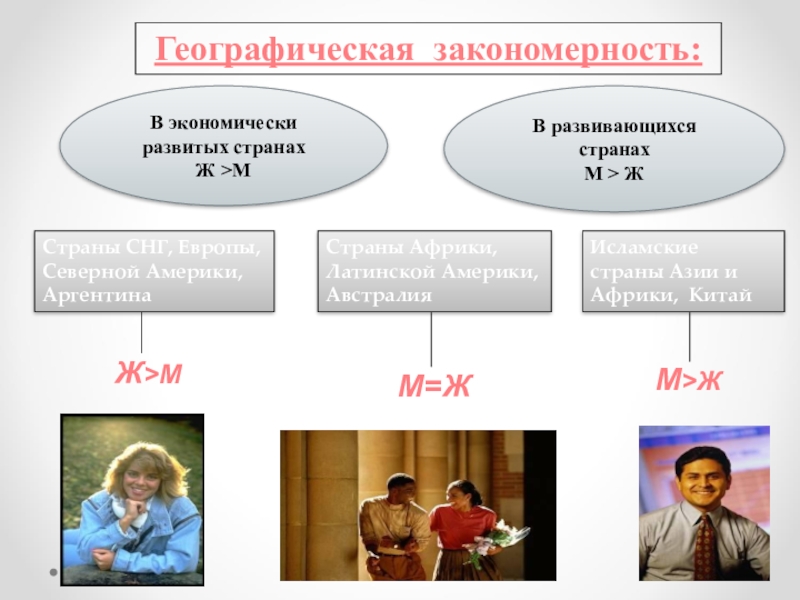 1. Структура населения по полу и возрасту в странах различного типа социально-экономического развития.