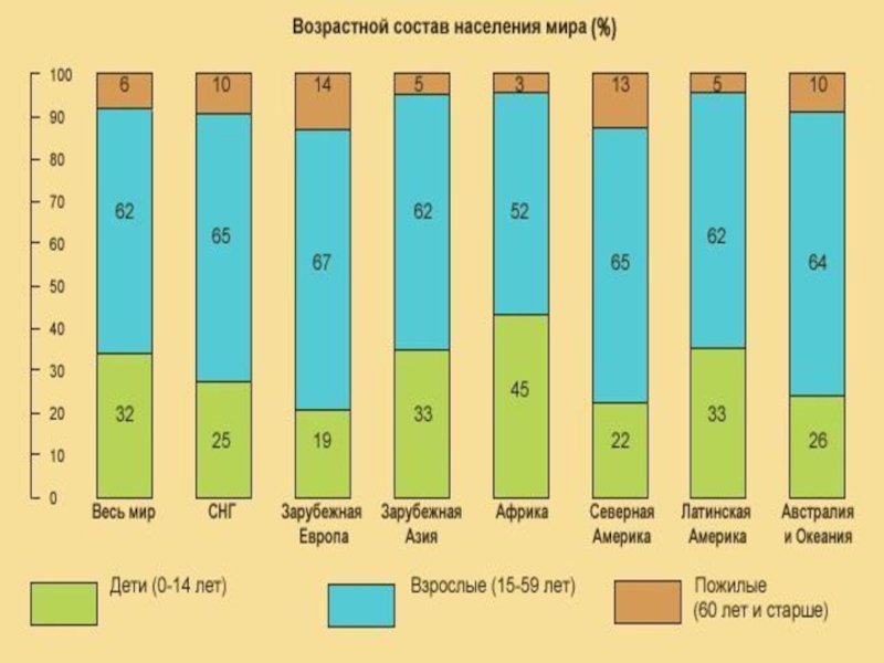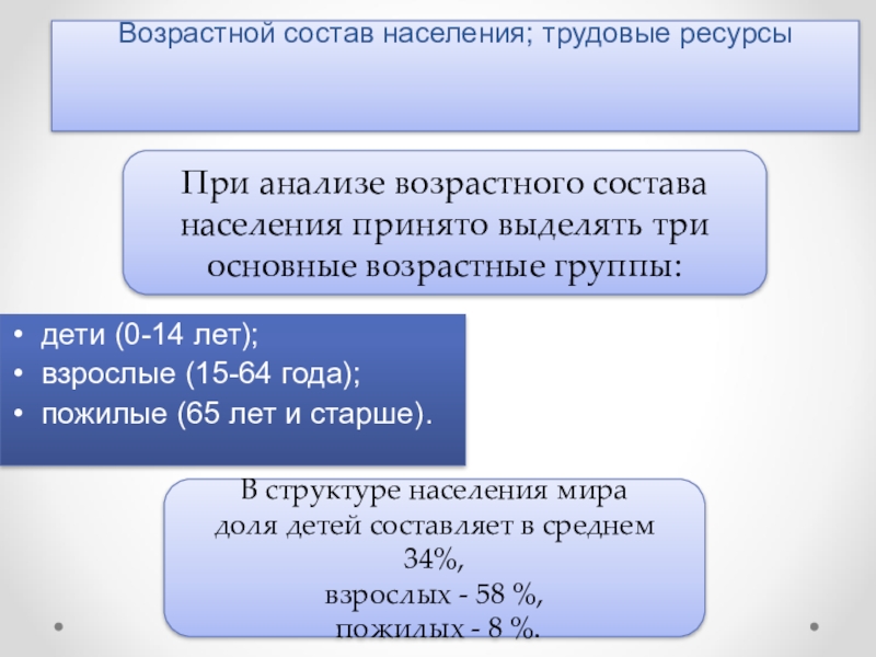 При анализе возрастного состава населения принято выделять три основные возрастные группы: