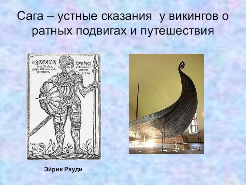 Сага – устные сказания у викингов о ратных подвигах и путешествияЭйрик Рауди