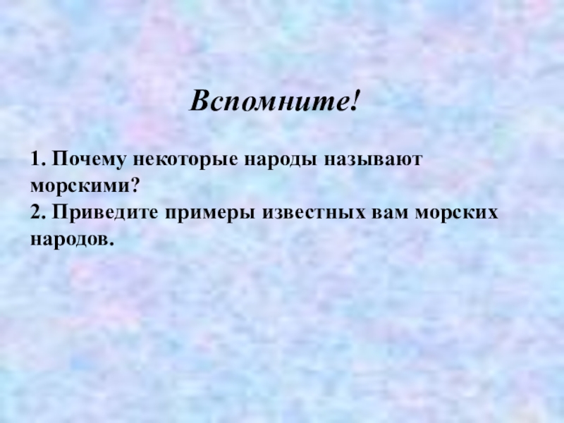 Вспомните!1. Почему некоторые народы называют морскими?2. Приведите примеры известных вам морских народов.