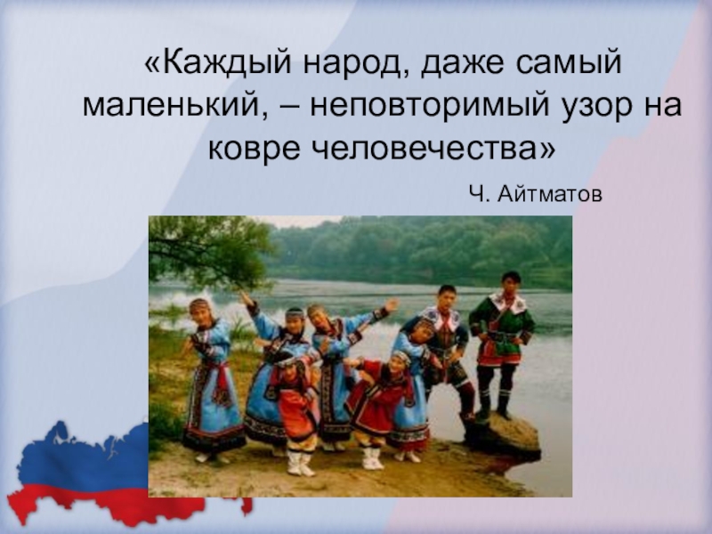 Слайд 3«Каждый народ, даже самый маленький, – неповторимый узор на ковре человечества»