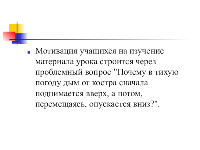Мотивация учащихся на изучение материала урока строится через проблемный вопрос "Почему