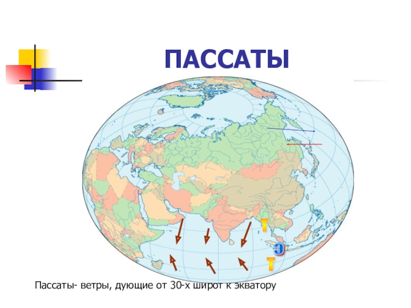 Пассаты- ветры, дующие от 30-х широт к экватору