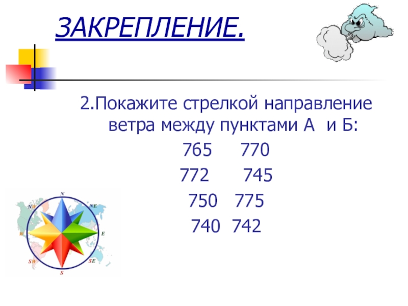 1.Указать стрелкой направление ветра: с, ю, в, з, с-з, ю-з, с-в,