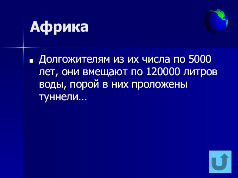 Африка Долгожителям из их числа по 5000 лет, они вмещают по 120000 литров воды, порой в них