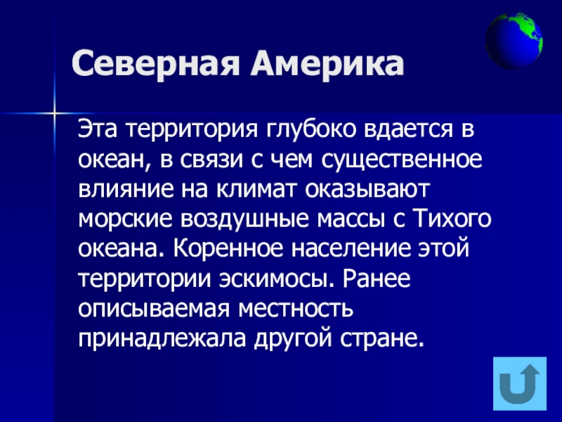 Северная АмерикаЭта территория глубоко вдается в океан, в связи с чем существенное влияние на климат оказывают морские