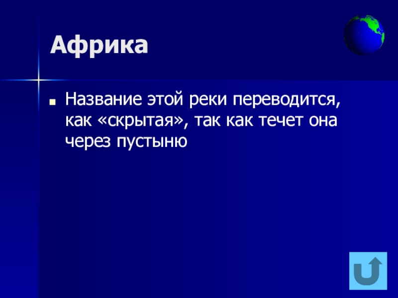 Африка Название этой реки переводится, как «скрытая», так как течет она через пустыню