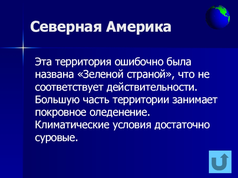 Северная АмерикаЭта территория ошибочно была названа «Зеленой страной», что не соответствует действительности. Большую часть территории занимает покровное