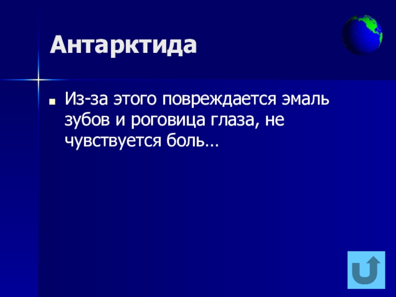 Антарктида Из-за этого повреждается эмаль зубов и роговица глаза, не чувствуется боль…