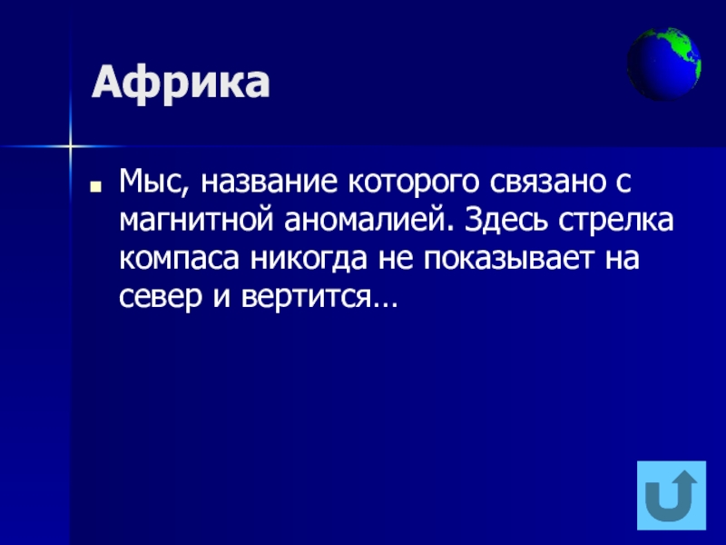 Африка Мыс, название которого связано с магнитной аномалией. Здесь стрелка компаса никогда не показывает на север и