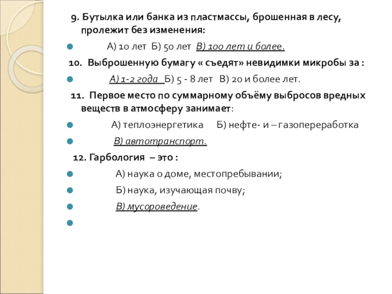 Слайд 21 9. Бутылка или банка из пластмассы, брошенная в лесу, пролежит